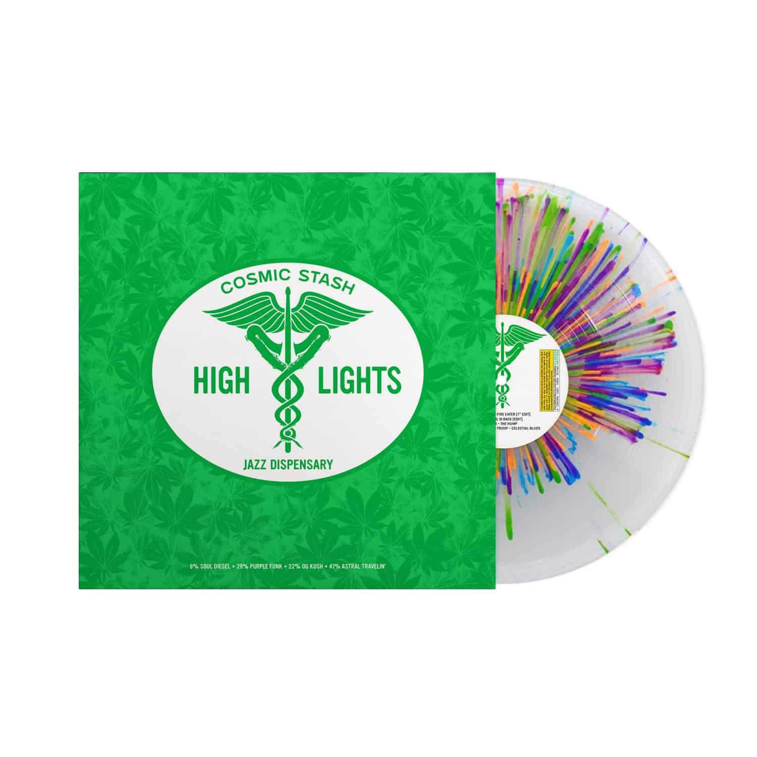 "A decade of dankness. In honour of the 10th anniversary of the box set that started it all, Jazz Dispensary is excited to present Cosmic Stash: High Lights. Nine tracks from Jazz Dispensary heavy hitters like Johnny Hammond, Patrice Rushen, David Axelrod, Gary Bartz, and more, harvested from the original Cosmic Stash box set and pressed on a limited edition splatter LP available only at independent retailers. Wake and bake, but don’t snooze and lose."