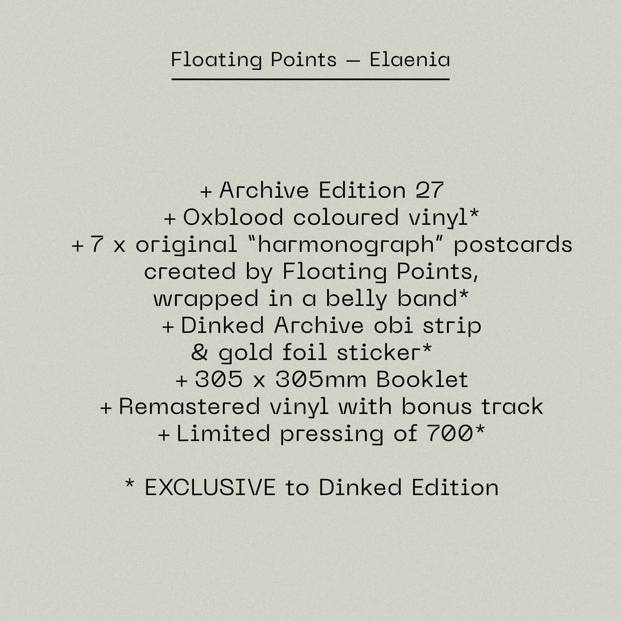 "For the past ten years, all roads Shepherd has followed have been slowly leading to Elaenia - an album with roots deep in his formative years, and one that draws upon everything Shepherd has done so far. An album that provides context to the music that Shepherd has been making to date. Every DJ set he's performed, every talent he has produced, every composition he has written are thought of as precursors to Elaenia - a dazzling score which puts Shepherd in the spotlight as a composer who has produced an album that bridges the gap between his rapturous dance music and formative classical roots. Drawing inspiration from classical, jazz, electronic music, soul and even Brazilian popular music, Elaenia - named after the bird of the same name - is the epitome of the forward-thinking Floating Points vision in 2015."